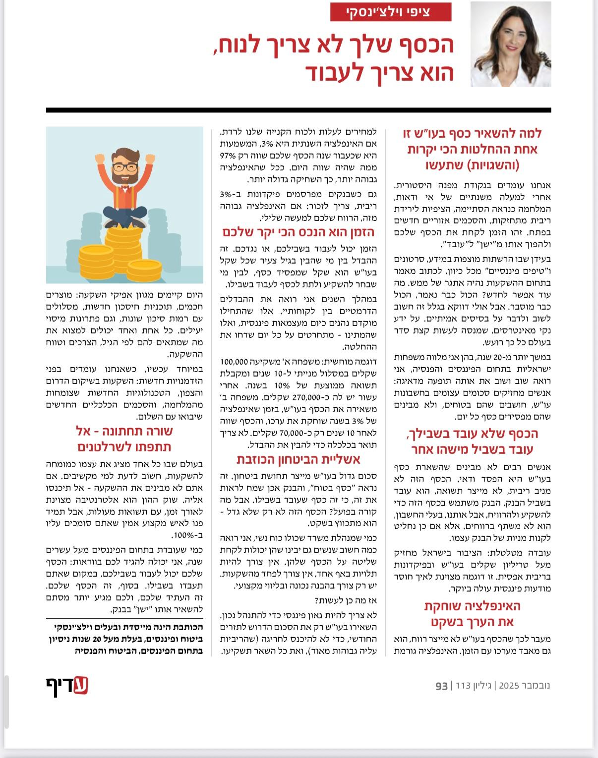 ציפי וילצ'ניסקי, בעלת סוכנות הביטוח וילצ'ינסקי ביטוח פנסיה ופיננסים, רוצה שתדעי: